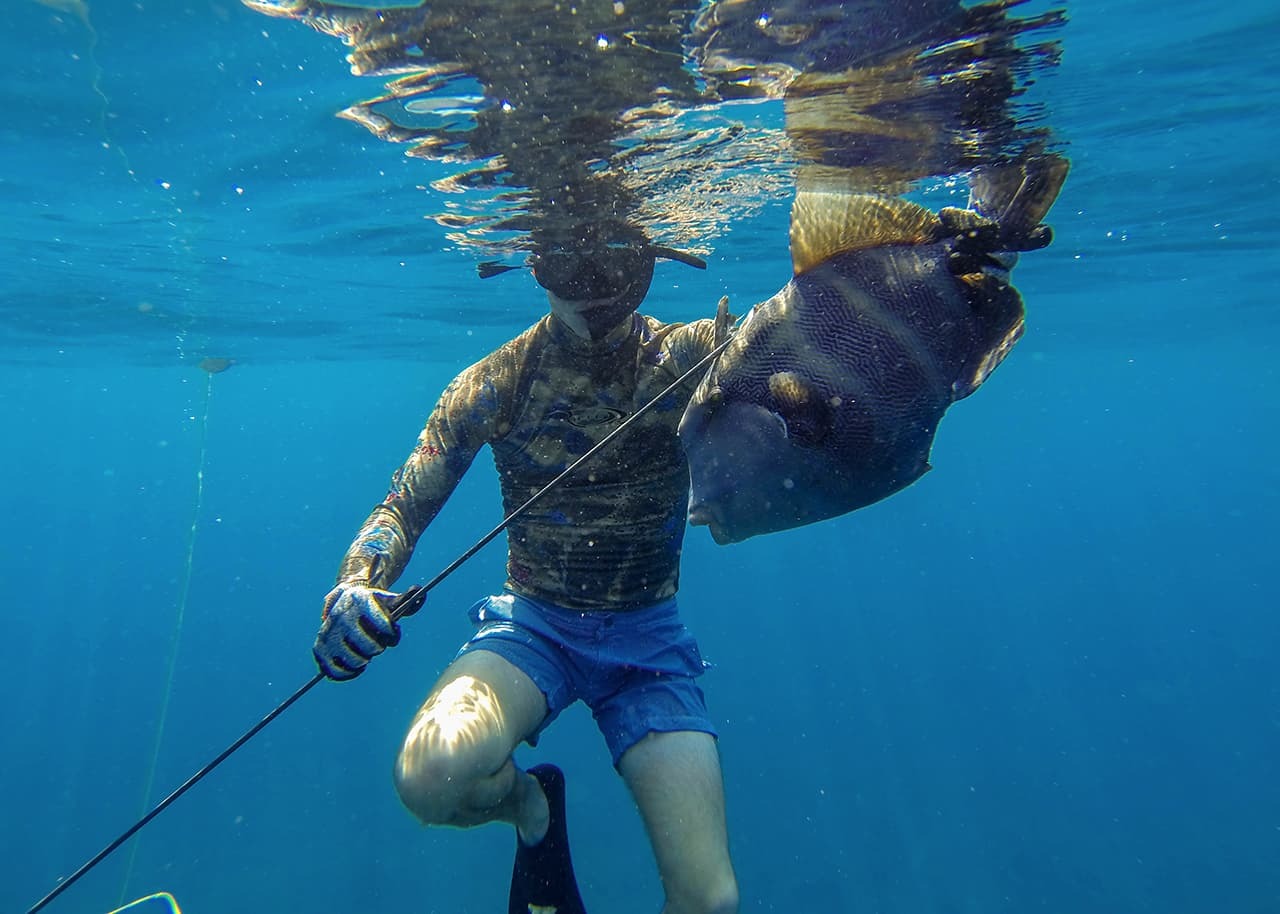 Mejore su juego con valiosos conocimientos locales de nuestros guías de lanzas sobre los peces comestibles del arrecife, su comportamiento y terreno, y el equipo y las técnicas adecuadas para cada especie. Refina tus técnicas de camuflaje y emboscada mientras buscas en las cuevas del arrecife deliciosas especies de pargos, o entra en acción mientras jureles o caballas españolas asaltan el borde del arrecife.